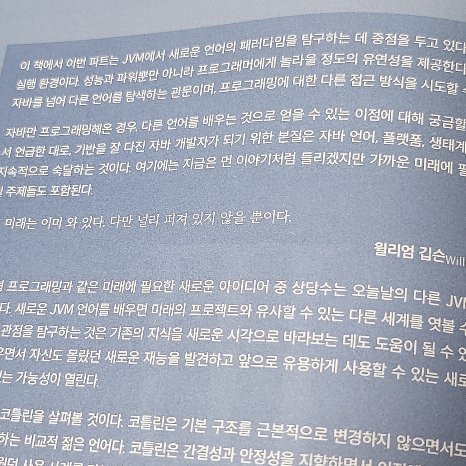 2. 솔직히 'JVM을 사용하는 다른 언어'를 소개하는 파트는 빼도 되지 않았나 싶다. 뭘 말하고 싶은지는 알겠지만, 실제로 개발하면서 자바와 코틀린, 클로저를 같이 쓰는 경우는 아직 못본 것 같다. 심지어 클로저라는 언어는 처음 듣는다.