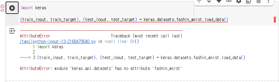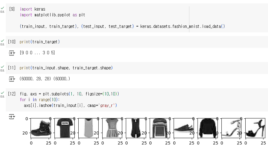 여기서도 첫번째 코드 부분의 'import keras' 나 'import matplotlib.pyplot of plt' 부분은 해당 코드를 설명할 때 나오지 않고 아래와 같이 나온다.