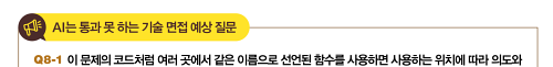 각 파트별로 기술 면접에서 예상되는 질문들이 포함되어있고, 해당 파트의 내용들이 실제 현장에서는 어떻게 사용되는지 현업에서의 이야기들이 담겨있다. '추천의 말'에서 나온 단어를 빌리자면 마치 '코드리뷰' 를 하는 것과 같은 느낌을 준다.