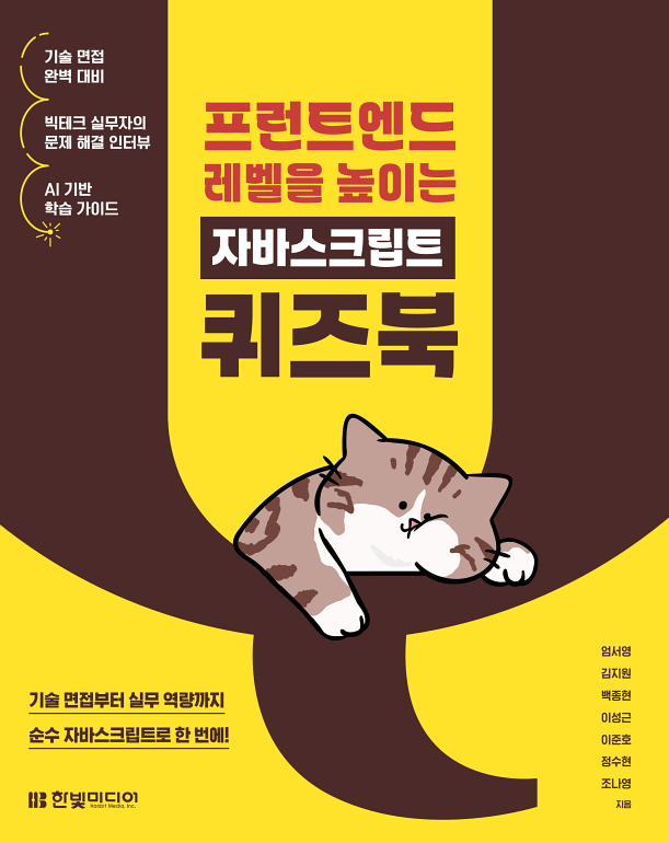독특한 구성으로 퀴즈 뿐 아니라 면접에서, 현업에서 어떤식으로 생각하고 이야기하고 있는지 등 다양하게 즐길 수 있는 책으로, 개인적으로는 고양이 그림이 중간중간에 더 많았으면 했지만 깔끔하게 디자인된 좋은 책이라고 생각하며, 자바스크립트를 새롭게 배우거나 개념을 확실하게 잡고 싶은 자바스크립트 개발자들에게 추천한다.