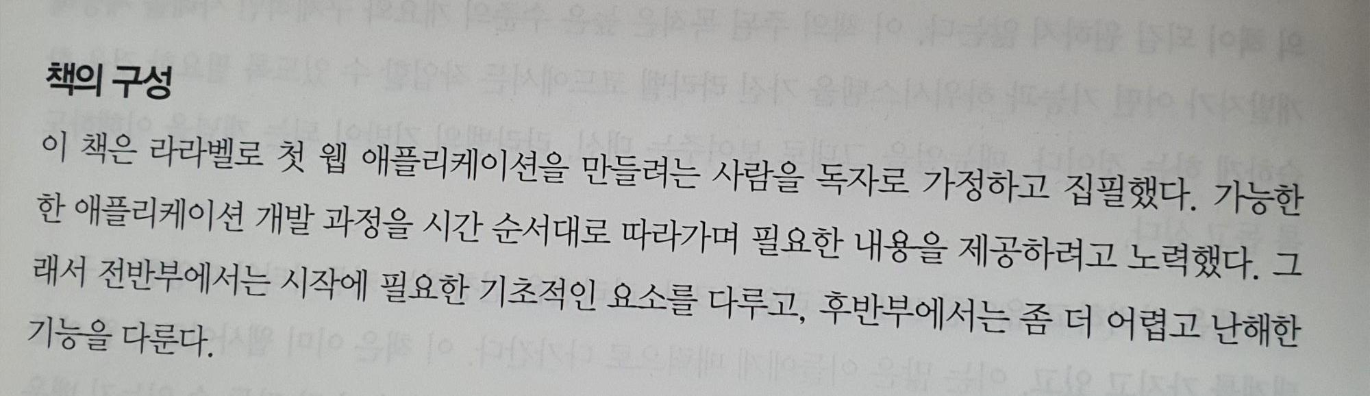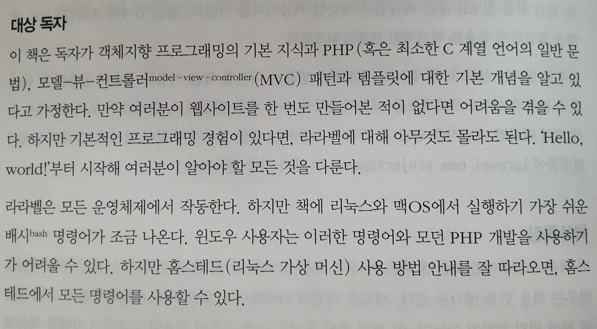 또한 라라벨을 첫 웹 애플리케이션으로 만들려는 사람을 독자로 가정하고 집필했다고 한다.