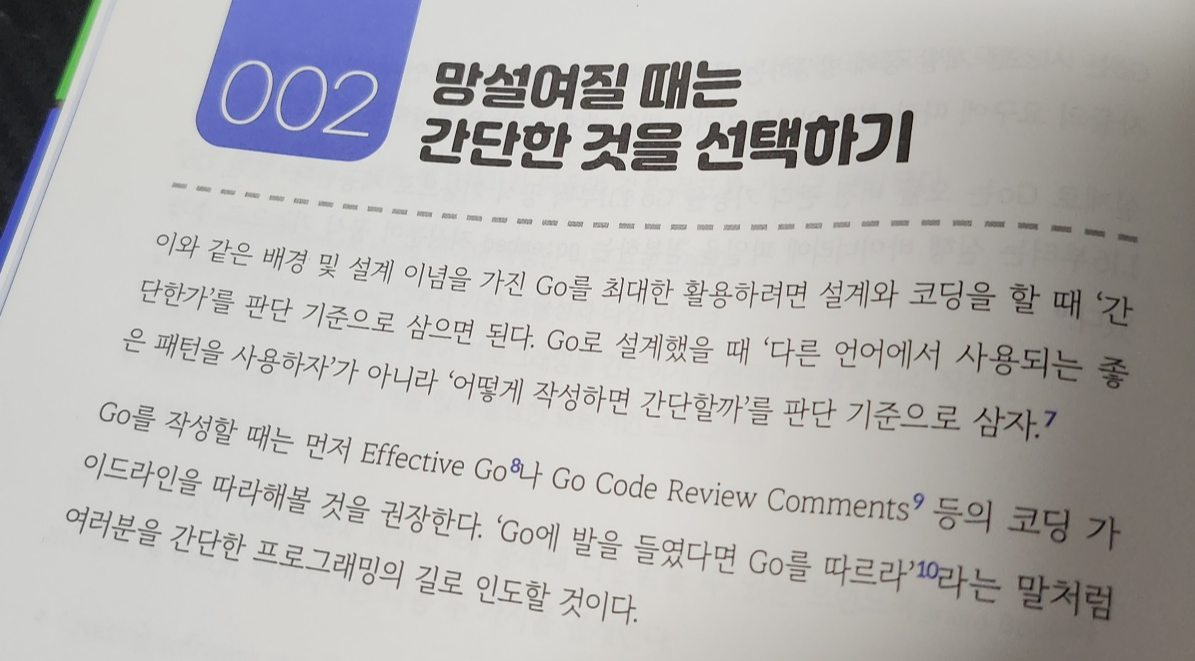 - Go가 추구하는 방향성 중 하나가 바로 '간결함' 이다. 어떤 문제에 대해 간결하게 해결할 수 있는 방안을 모색하고 사용하는 것이 Go의 모토인 것 같다.