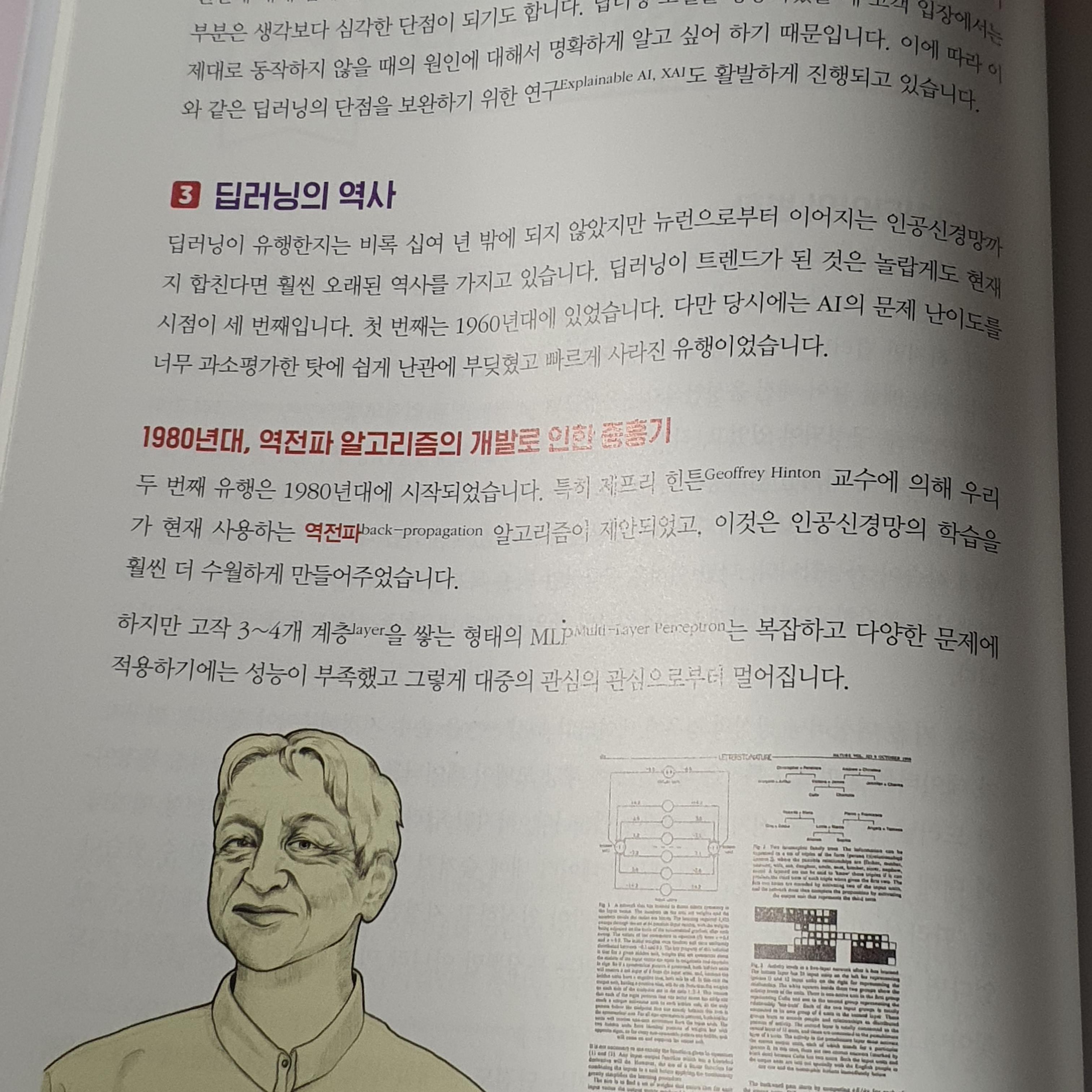 2. 어쩔수 없이 이론이 많아서 검정것은 글이고 흰것은 배경인 사태를 방지하기 위해 어떻게 딥러닝이 시작되었는지와 어떤 눈에 띄는 사건들이 있었는지 설명하면서 어째서 딥러닝을 써야하는지, 왜 써야하는지를 자연스레 느끼게 해줌(마찬가지로 이 책에서 왜 파이토치를 왜 선택했는가도 설명).